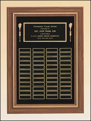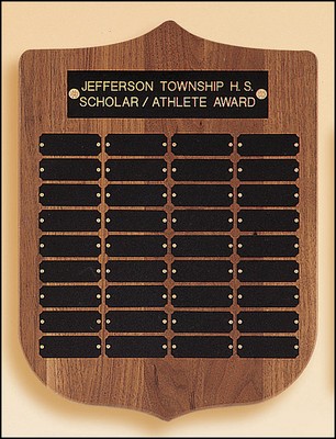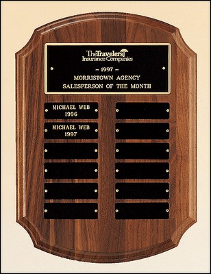 Solid American walnut perpetual plaque with 11 plate combinations, 12-144 plates. Call for more information.