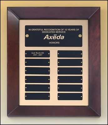 Cherry finish wood perpetual plaque with 12 acrylic plates.